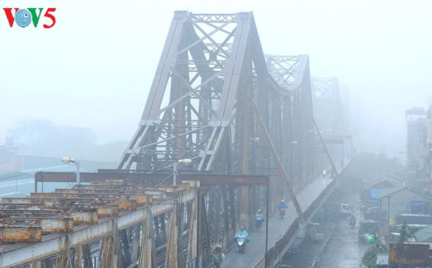 | 早朝の霧に覆われるロンビェン(Long Bien)橋 |