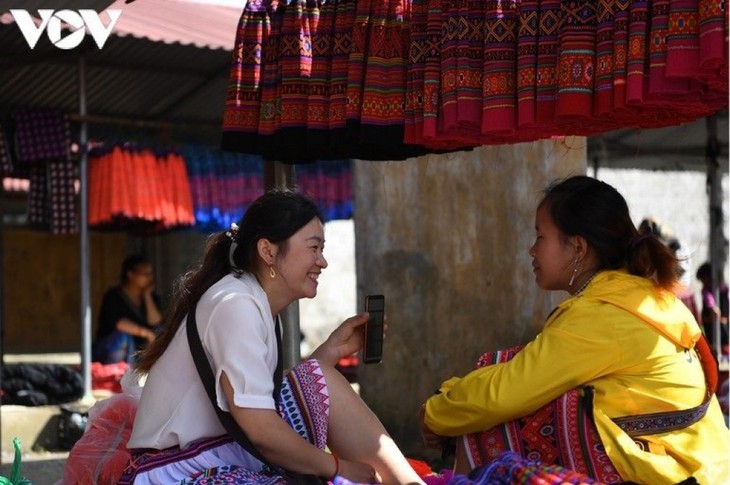 | ここでソンラ省近辺の少数民族が集まって、民族衣装の生地や装飾品などが売買されている |