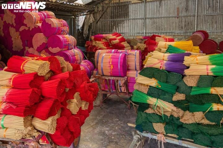 | 最近、クアン・フー・カウ村の人々は、旧正月テトを控え、市場に供給するため、お香の生産で忙しくなっている |