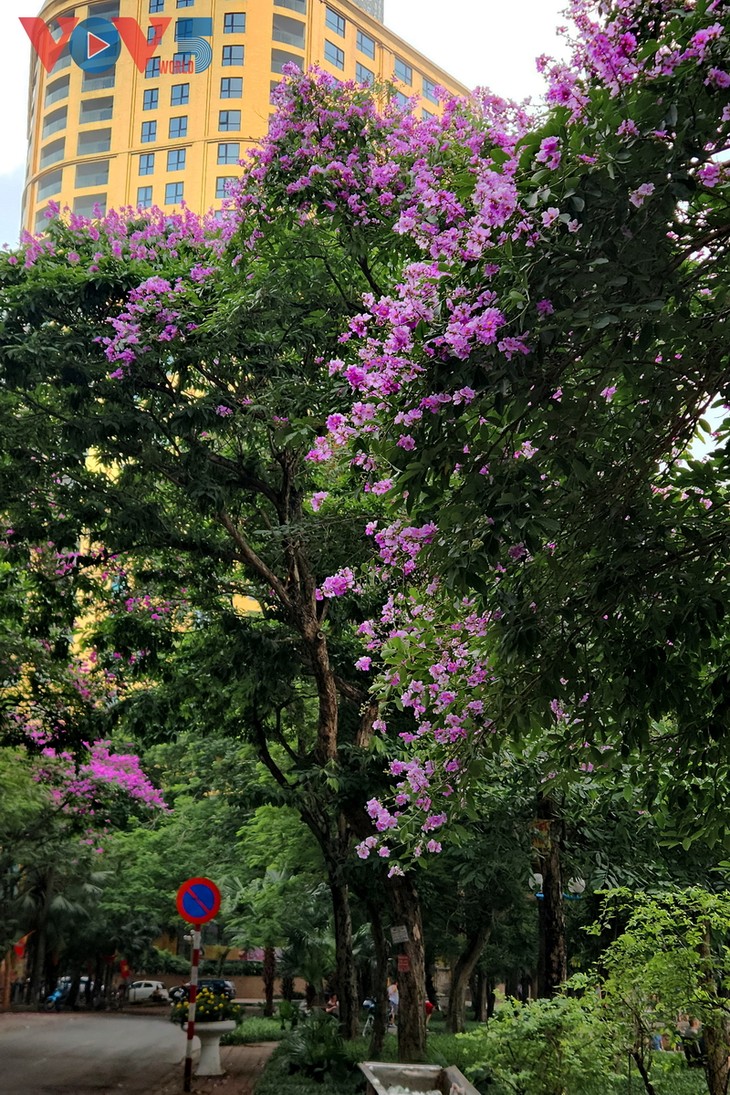 | 今年は天候に恵まれ、5月上旬からハノイの街路にバンランの花が咲き誇り、多くの人々や観光客が写真を撮っている |