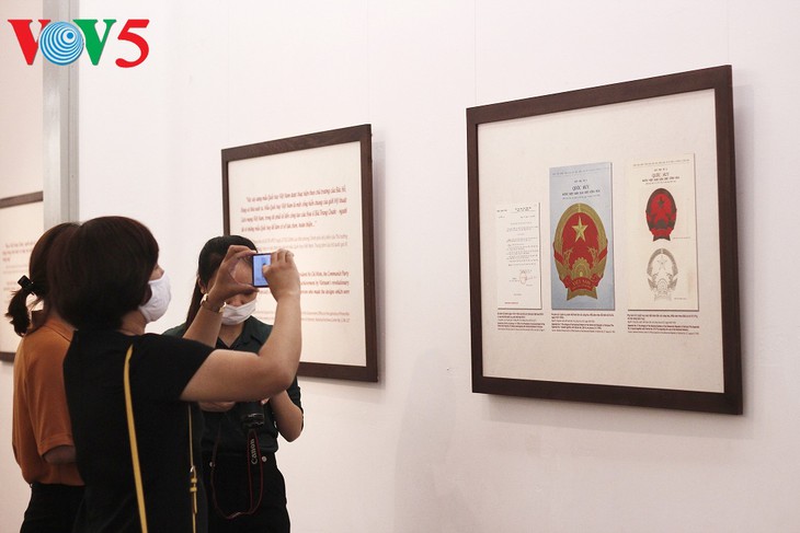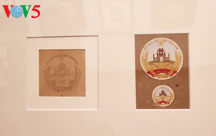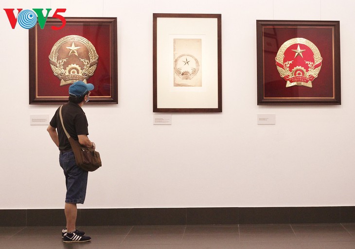| 100点あまりのベトナム国章・切手のスケッチが展示 |