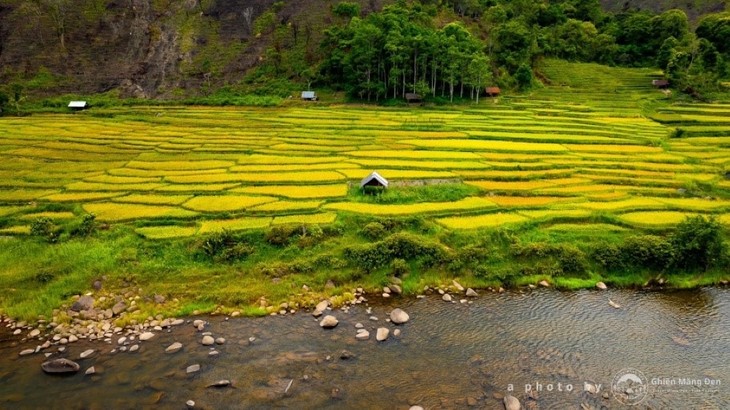 | 5月下旬以降、黄金色に輝くコントゥム省の棚田(写真:FB Hi Măng Đen) |