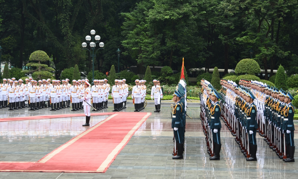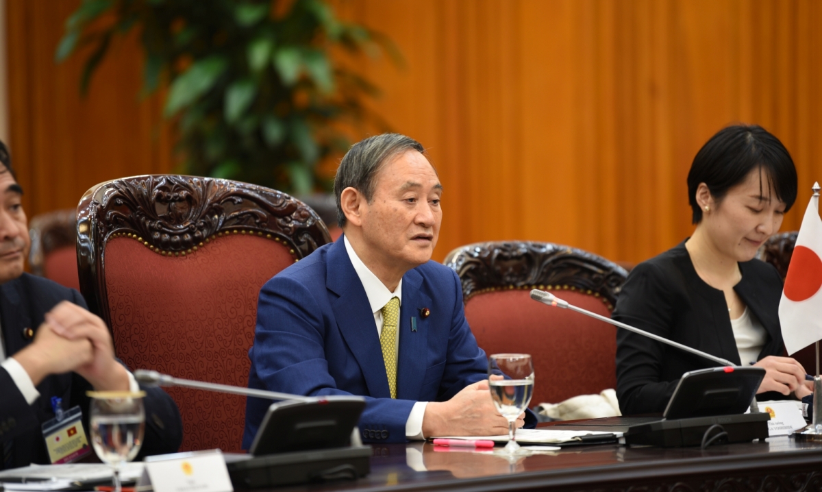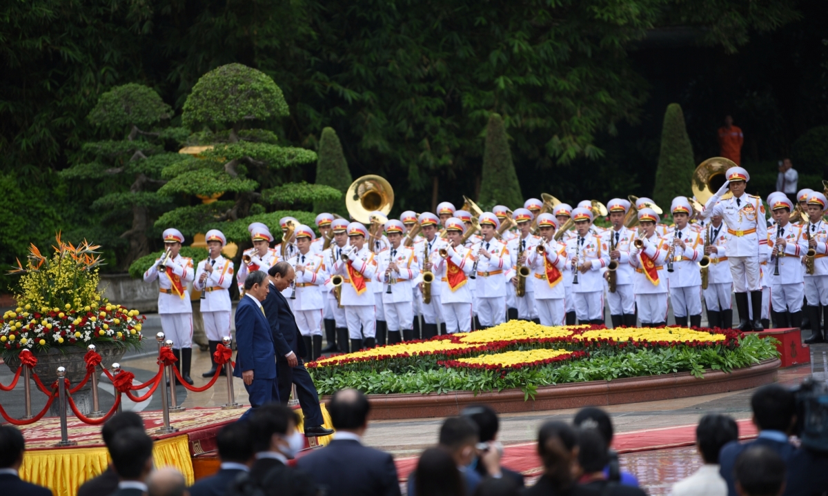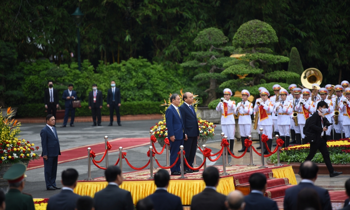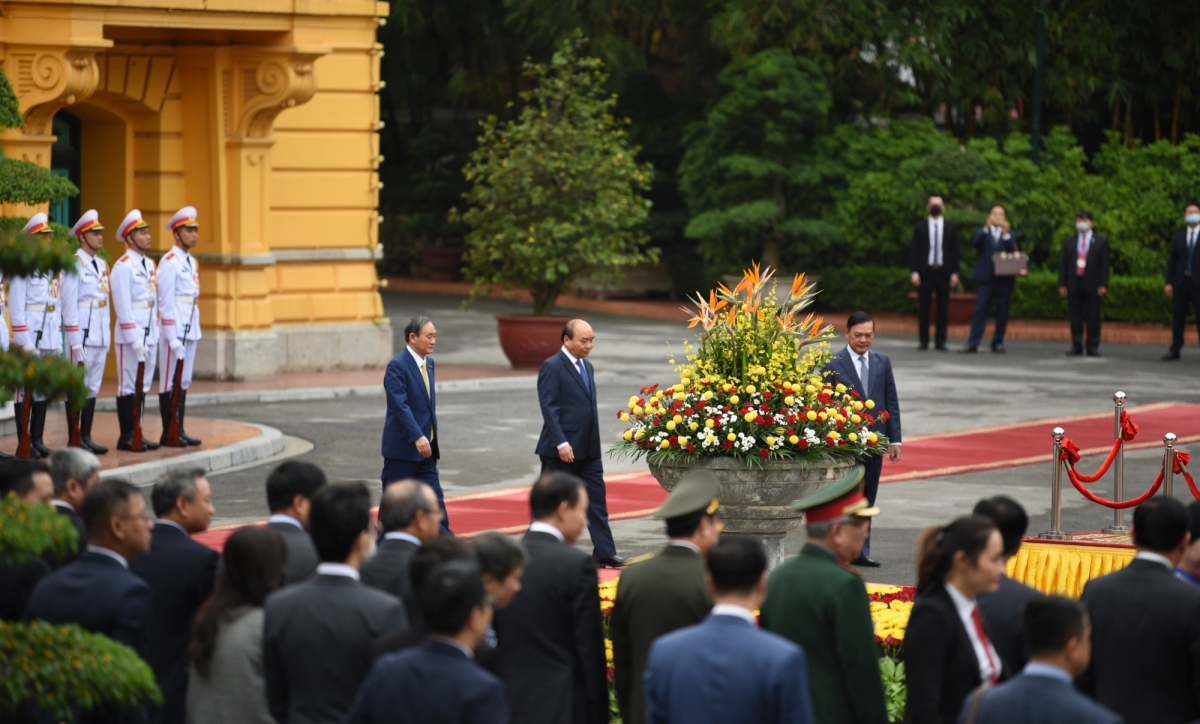 | 歓迎式後、グエン・スアン・フック首相と菅義偉首相による首脳会談が始まる |