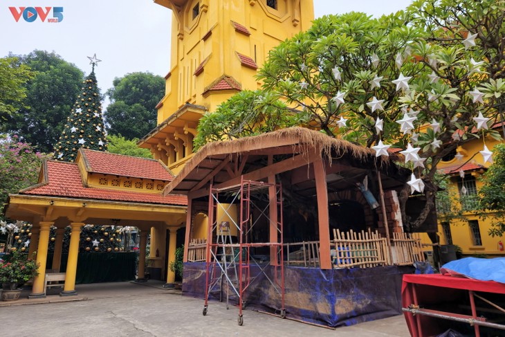 | クリスマスツリーやクリブ、イルミネーションなどが飾られるハノイ大教会 |
