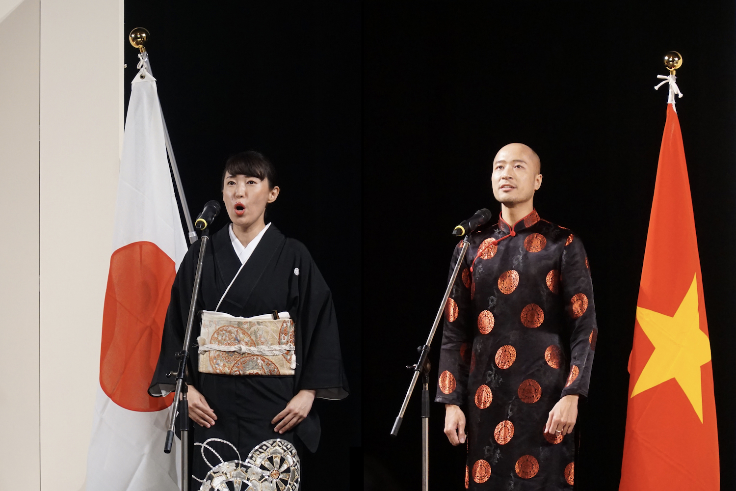 | 両国の国歌をうたう |