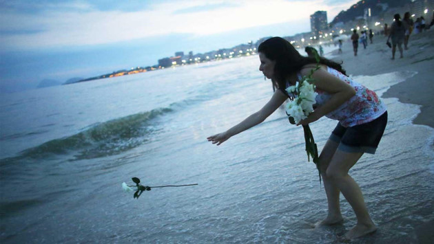 | ブラジル人は新年を迎えるときに、白い花を海に投げる習慣がある |