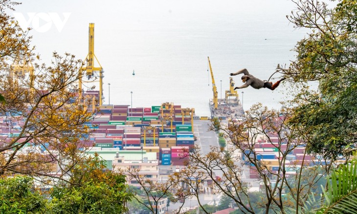| 午後は、アカアシドゥクラングールが餌を求めて移動する時間 |