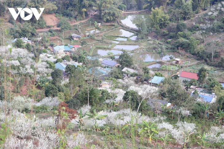 (VOVWORLD) - 今、北部山岳地帯ソンラ省はスモモの旬を迎えています。この時期に、ソンラ省に足を運ぶ観光客は北西部の美しい風景を眺めながら、新鮮な空気を味わい、スモモの花と写真を撮ることができます。この写真記事で、ソンラ省のスモモの花の美しさをご紹介します。