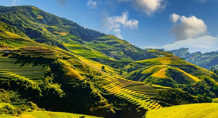 | 秋に入り、黄金色に染まる棚田(写真:dulichdienbien.vn) |