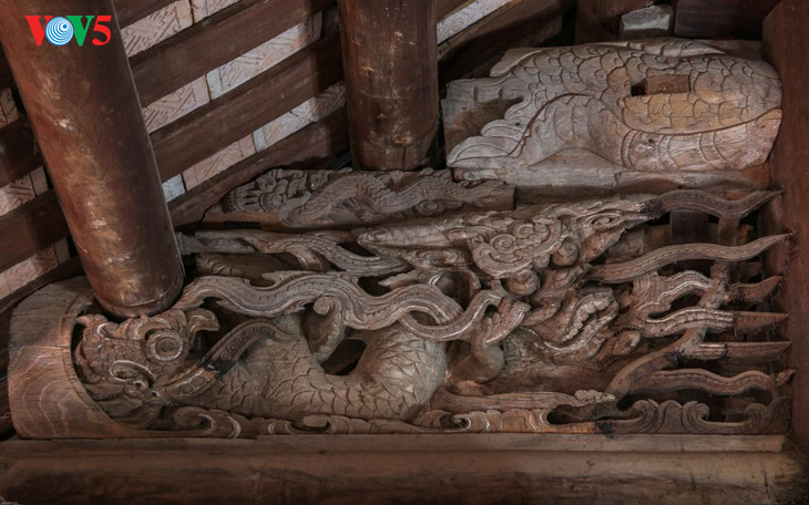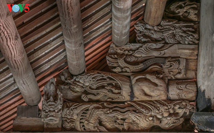 | 屋根を支える木造の骨組みが竜の模様を刻まれた |