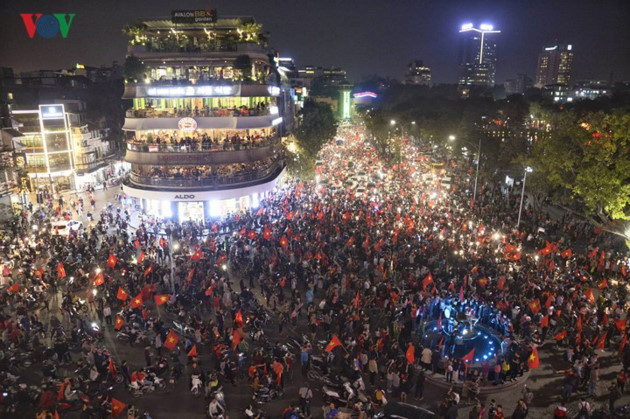 (VOVWORLD) - 既にお伝えしましたように、中国で開催されている23歳以下(U23)のサッカーアジア選手権大会で、ベトナムとカタールとの準決勝戦がベトナム時間の23日午後に行われましたが、ベトナムが勝ち、決勝進出を決めました。その後、首都ハノイをはじめ、全国各地が、勝利に熱狂する雰囲気に包まれています。 メディアVOV5