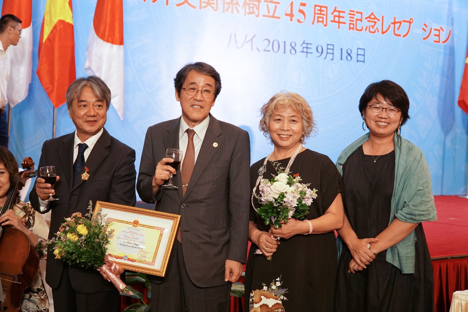 (VOVWORLD) - 既にお伝えしましたように、18日夜、ハノイで、越日外交関係45周年記念レセプションが行われました。これには、両国の代表多数が参加しました。また、この気に、「友好勲章」授章式も行われました。この写真記事で、これをご紹介します。 Thanh Tuan
