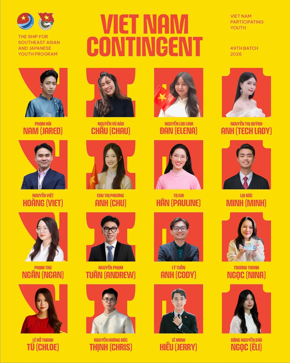 29日、ホーチミン共産青年同盟中央委員会は、2026年1月15日から2月17日まで実施される第49回東南アジア青年の船(SSEAYP)に参加するベトナム代表団16人を発表しました。