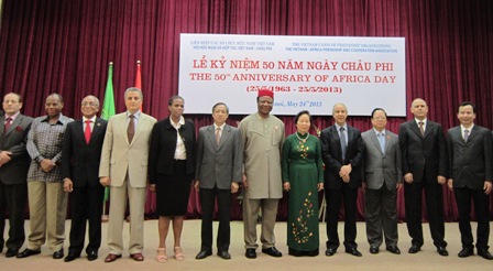 24日、ハノイにあるベトナム友好諸組織連合会の本部で、5月25日のアフリカデーを記念する式典が行われました。式典には、グェン・ティ・ゾアン国家副 主席、ベトナムに駐在するアルジェリア、アンゴラ、エジプト、リビア、モザンビーク、ナイジェリア、南アフリカ、スーダンのアフリカ諸国の大使と代表らが 参加しました。