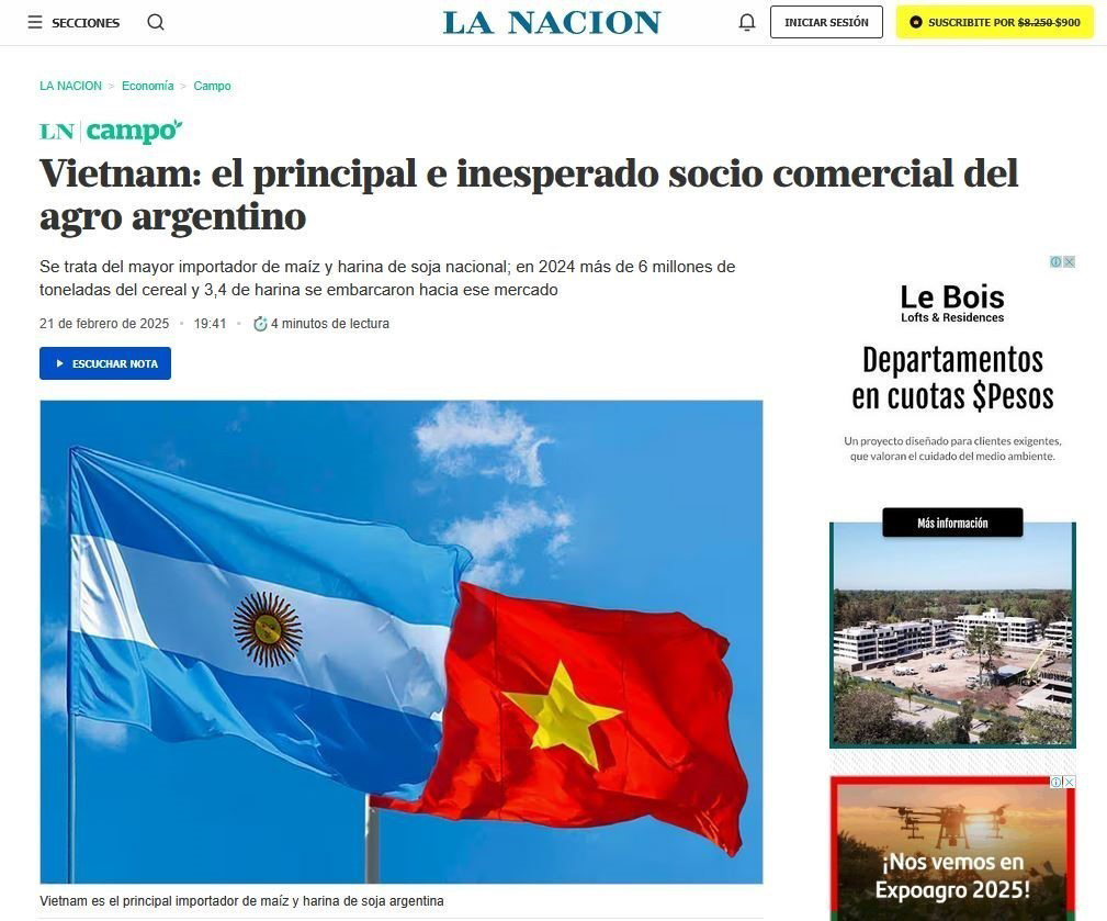 同紙は、アルゼンチン最大の農産物取引所であるロサリオ穀物取引所(BCR)の統計を引用し、ベトナムがアルゼンチンの主要な農業貿易パートナーとなったと伝えています。