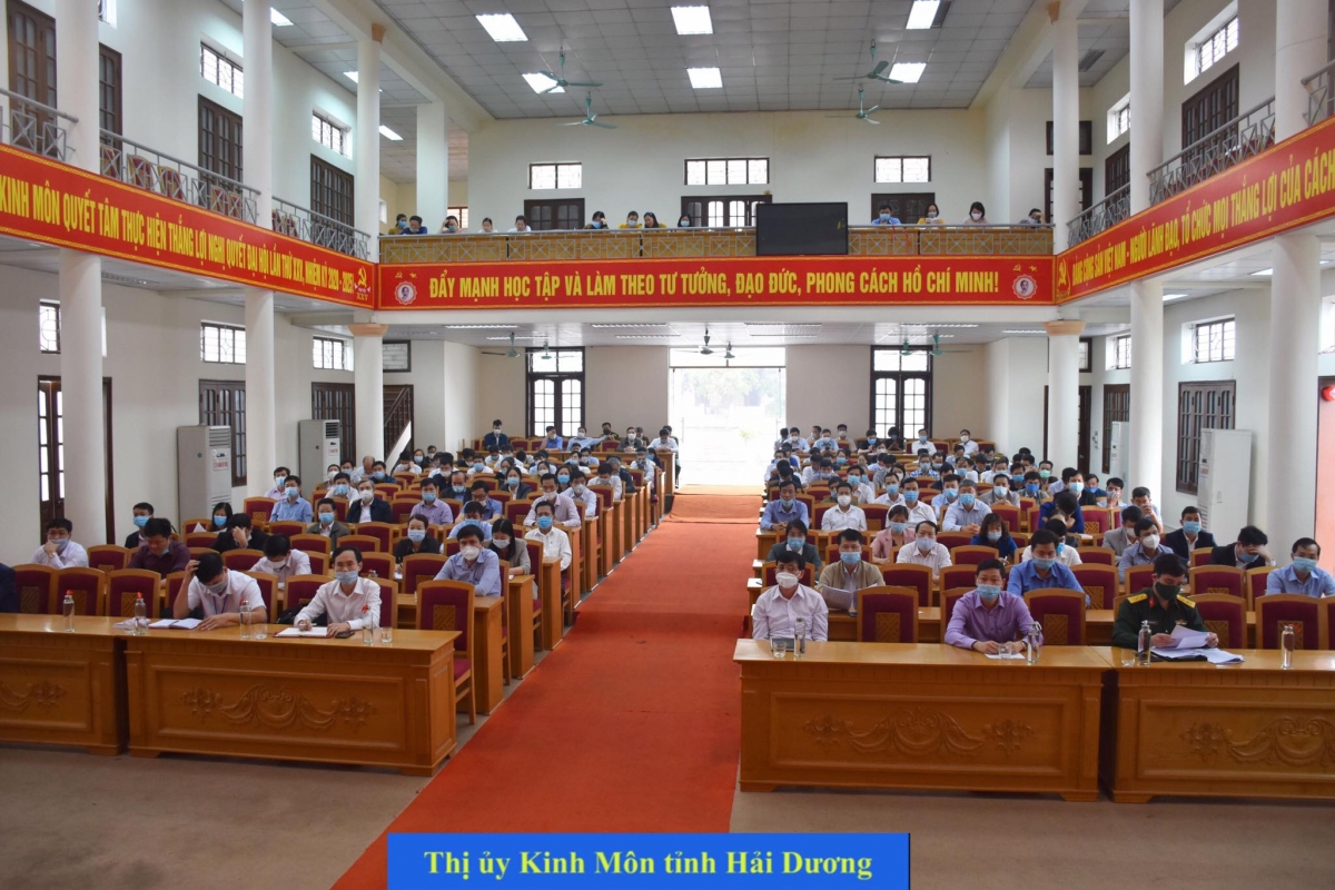 会議に出席するハイズオン省キンモン町の党員ら |