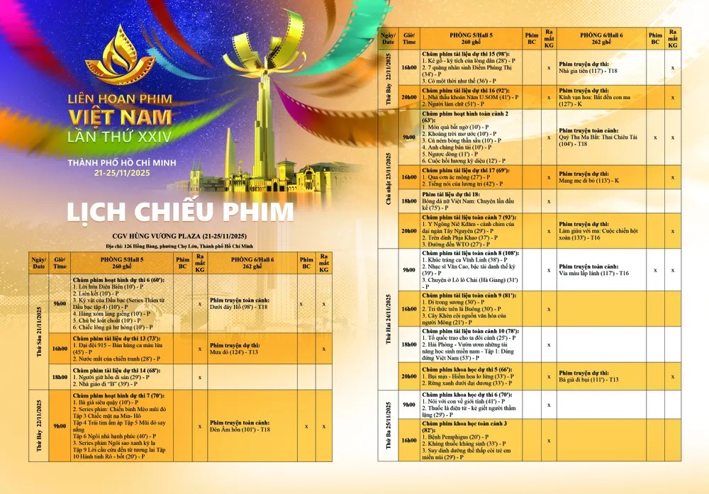 今回の映画祭は、民族色豊かで、人間性と創造性に富む映画作品、そして近年顕著な成果を上げた映画人を称える場でもあります。上映はホーチミン市内の3つの大型シネコンであるGalaxy Park Mall、CGVフンヴオン・プラザ、Cinestar ハイバーチュンで行われ、会場を分散させることで観客のアクセス向上と関連イベントの円滑な実施が期待されています。
