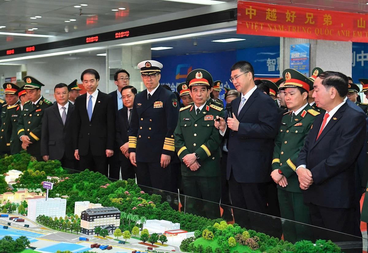 16日午前、ヒューギ国際国境検問所で行われた見送り式の後、ベトナム国防省の高級代表団は中国・広西チワン族自治区へと渡り、プログラムの一環としてヒューギ国境検問所の警備隊への訪問、両国海軍の合同パトロール前のオンライン報告の視察、ヒューギスマート国境検問所の視察、第4ピンシャン市立小学校の見学などを行います。