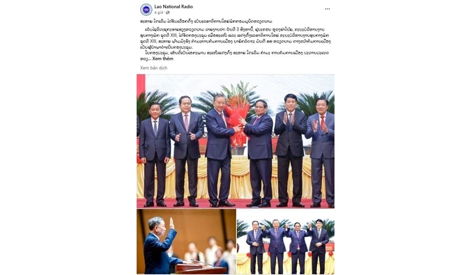 また、ラオス国営ラジオの電子版も、ラオス人民革命党中央委員会書記長からベトナム共産党中央委員会書記長へのお祝いの書簡の全文を掲載し、「トー・ラム氏がベトナム共産党中央委員会書記長に選出」という記事を掲載しました。その中で、就任式のトー・ラム党書記長・国家主席の演説を引用し、「故グエン・フー・チョン書記長と歴代の党指導者の革命事業の継承と発展を確認し、団結を維持し、党中央委員会、政治局、書記局の全員とともに、第13回党大会で設定された目標と任務を達成するために全党、全軍、全国民をリードし、第14回党大会を成功裏に開催し、新たな時代の発展に向けて国を確実に前進させる」というトー・ラム氏の決意を強調しました。