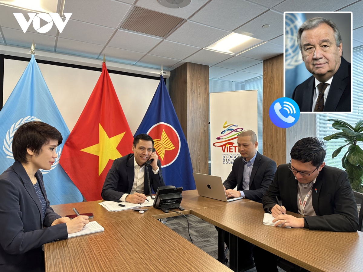 電話会談で、グテーレス事務総長は、トー・ラム大将が国会によってベトナム社会主義共和国の国家主席に選出されたことにお祝いの言葉を送りました。また、ベトナム共産党とベトナム国家、およびトー・ラム国家主席の指導の下、ベトナム国民が、引き続き、持続可能な開発目標の遂行をはじめ、多くの分野においてさらなる成功を収めるとの確信を表明するとともに、国連が引き続きベトナムの信頼にたるパートナーであり、国の発展プロセスでベトナムとともに歩んでいると確認しました。