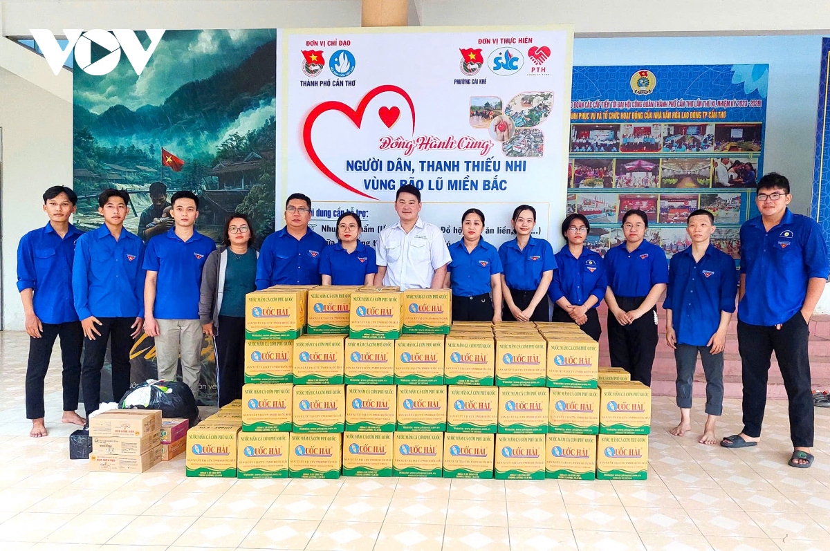 11日午後、南部カントー市では、北部の被災地の住民へ必要な物資や生活必需品、衣類、医薬品などを寄付するための支援活動が始まりました。カントー市の共産青年同盟と学生協会は、一日で15トン以上の必需品と5トン以上の衣類を受け取りました。