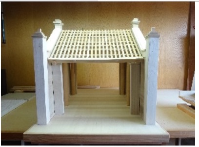 この模型は、江島さんが日本と東南アジア地域の木を使って復旧したもので、そのサイズは実物の10分の1です。この模型は組み立てが簡単で、伝統的な村の門の保存事業で教材として使われます。