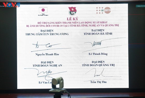 15日、ホーチミン共産青年同盟中央委員会や、UNFPA=国連人口基金ベトナム事務所、内務省はオンライン方式で、新型コロナウイルス感染症の影響を受ける中部ゲアン省や、ハティン省、クアンチ省の海外派遣の青年労働者を支援することに関する合意書の調印式を行いました。これは、日本政府の資金協力とUNFPAの技術支援により実施されている「社会的弱者を対象にするパンデミックの影響軽減プロジェクト」の一環です。