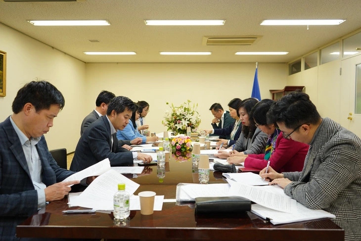 ハン次官と在日本ベトナム大使館の代表と会合の様子 |