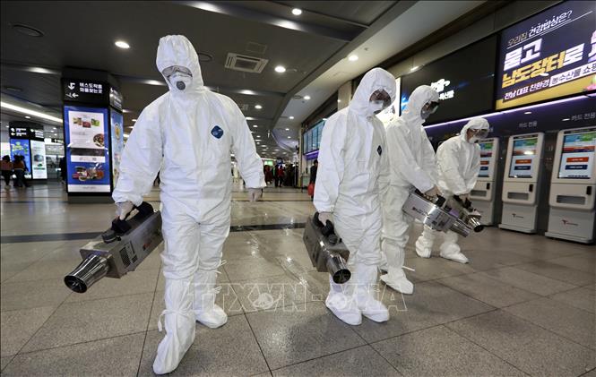 韓国のバス停での消毒作業(写真:AFP/TTXVN) |