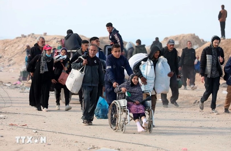 2025年1月28日、イスラエルとハマスの停戦発効後、ガザ地区中部の自宅へ戻る避難民(写真:THX/TTXVN) |