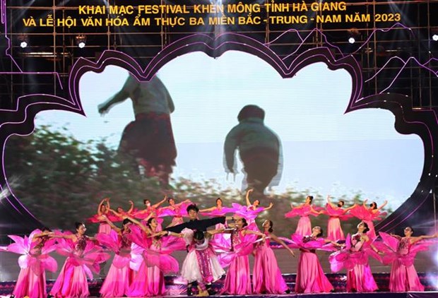 (VOVWORLD) - 22日夜、北部山間部ハザン省の省都ハザン市にある3月26日広場で、ハザン省の少数民族モン族の横笛「ケン」フェスティバルと北・中・南部の飲食文化祭りの開幕式が行われました。