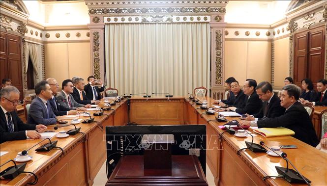 20日午後、ホーチミン市で、同市人民委員会のレ・タイン・リェム副委員長は、日越友好議員連盟の武部勤特別顧問と会見しました。