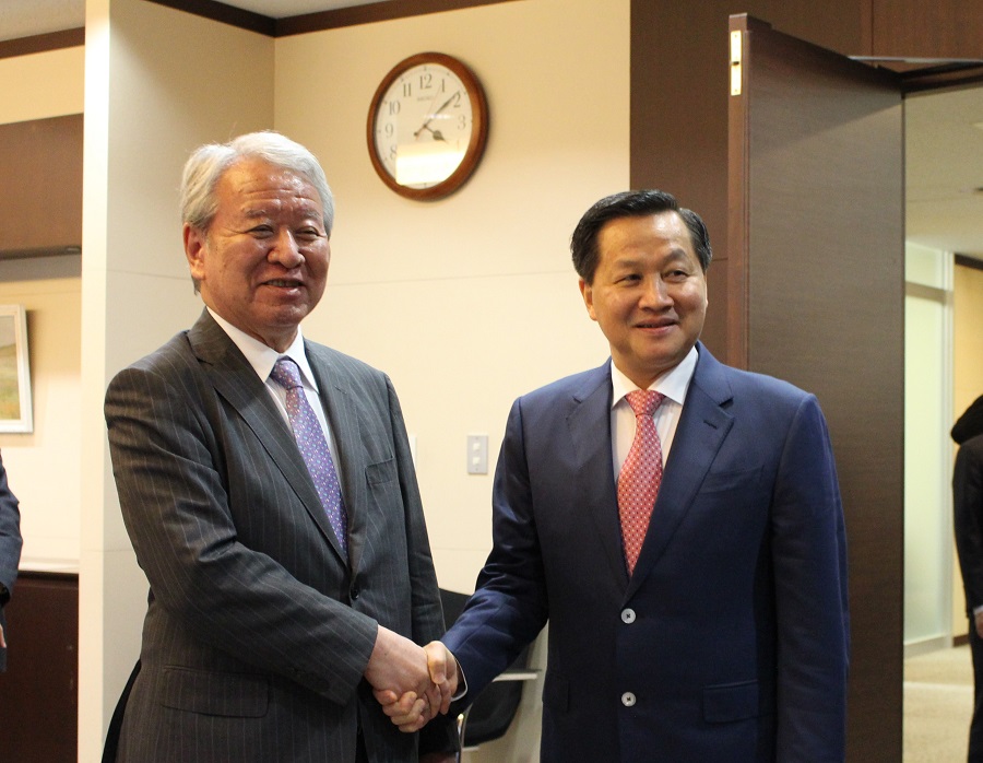 レ・ミン・カイ副首相(右)とJICAの田中明彦理事長(VOV東京支局) |