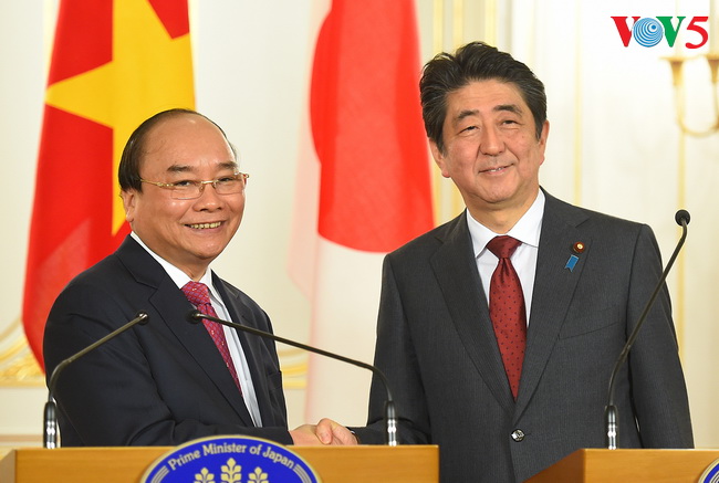 フック首相と安倍首相はベトナム投資振興会議に出席し、演説を行いました。これらの席で、双方は、両国関係がアジアの平和・繁栄のための広範な戦略的パートナーシップに格上げされた2014年からこれまで両国間の協力が全面的で迅速かつ実質的に発展していることに喜びの意を表明しています。