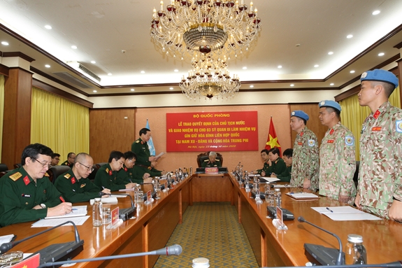 (VOVWORLD) -22日、ハノイで国防省は、南スーダンと中央アフリカ共和国に派遣される士官3人に国家主席の決定書を渡す式典を行いました。