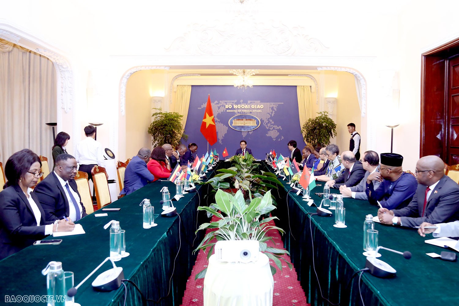 席上、発言に立ったビエット次官は、双方が引き続き多国間フォーラムにおいて互いに支持していく必要があると提案するとともに、アフリカ諸国が、人権理事会や、国連総会などの主要な国連機関へのベトナムの立候補を支持していくよう希望しました。また、貿易、投資誘致分野での協力強化を目指して、各大使が架け橋としての役割を果たした上で、具体的な協力計画の提出、展開での連携を推進していくよう提案しました。