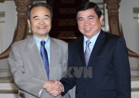4日、ホーチミン市人民委員会のグエン・タイン・フオン委員長は同市を訪問中の愛知県の日越友好議員連盟の直江(なおえ)・弘文会長と会見しました。席上、フォン氏は直江会長に対し、機器産業、ハイテク、薬品、観光、人材育成を中心に潜在力がある分野での両地方の協力を強化するよう要請しました。