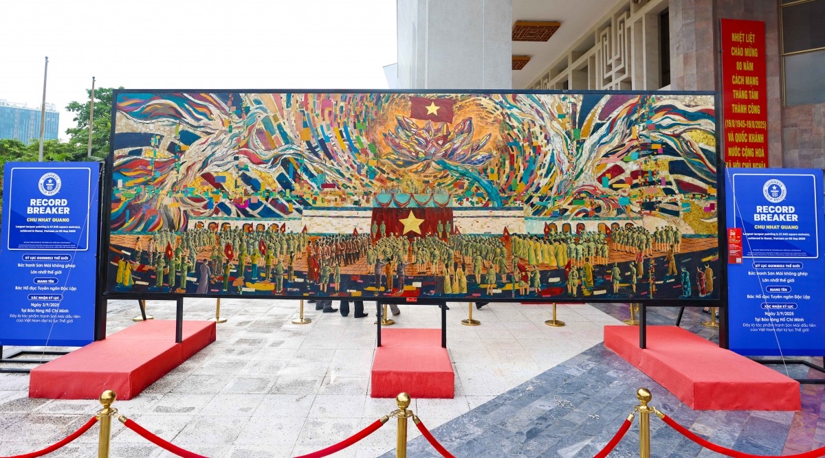 11日午後、ハノイ市内のホー・チ・ミン博物館で、ベトナムのチュ・ニャット・クアン画家による漆絵『ホー・チ・ミン主席が独立宣言を読む』が「世界最大の一枚板漆絵」としてギネス世界記録に認定されたことを祝う式典が行われました。式典にマイ・バン・チン副首相が出席しました。