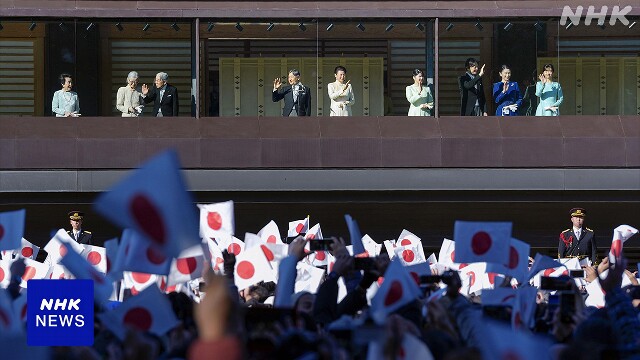 天皇皇后両陛下は、上皇ご夫妻や皇族方とともに午前中3回宮殿のベランダに立ち、訪れた人たちに笑顔で手を振って応えられました。