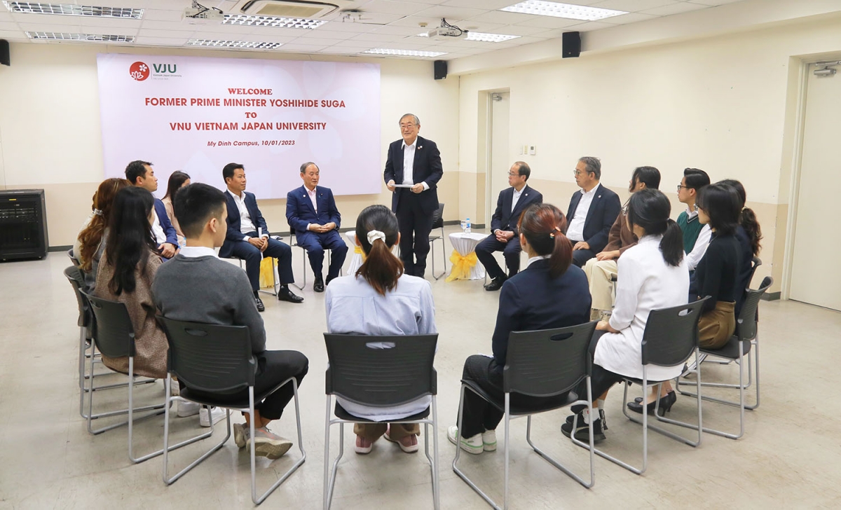 席上、菅前首相は、「日越大学は日本とベトナムとの友好関係のシンボルであり、次世代グローバル人材育成の分野で重要な役割を果たす」と強調しました。また、日本政府、企業、大学が引き続き日越大学とともに歩み、積極的に支援し、ハノイ国家大学に対し、ハノイ市タイックタット県に日越大学の新しいキャンパスを建設する事業を支持・支援するよう要請しました。