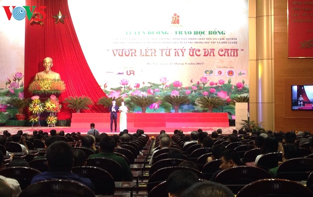 (VOVWORLD) -27日夜、ハノイで、困難な常態を乗り越えて、2016~2017年度学期で優れた成績を収めた傷病軍人や枯葉剤被害の子や孫を顕彰し、奨学金を引渡す式典が行われました。