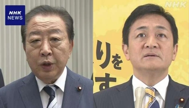 立憲民主党の野田佳彦代表(左)、野党勢力の結集を呼びかけ、玉木雄一郎氏(右)を野党統一候補として擁立する方針を示す(写真:NHK) |