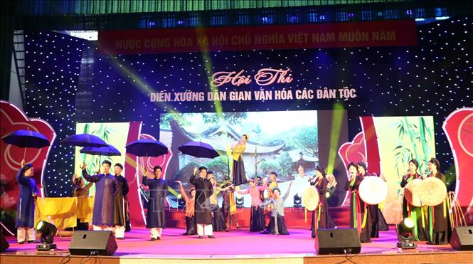 北部バクザン省の民俗芸術団が民謡クアンホ―を歌う(Đinh Hương/TTXVN) |