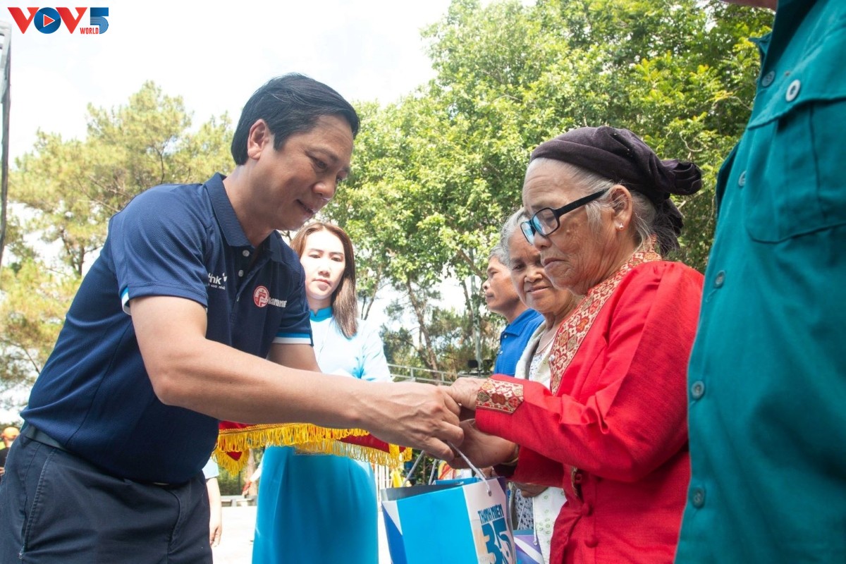 サイクリングの参加者はヒエンルォン橋から出発して、チュオンソン戦没者墓地を経由し、ドンハー市にあるフィデル(Fidel)公園の目的地に向かいます。チュオンソン戦没者墓地の経由で、参加者らは、英雄烈士に線香を手向け、革命功労者、貧困な状態にある生徒にプレゼントを手渡しました。
