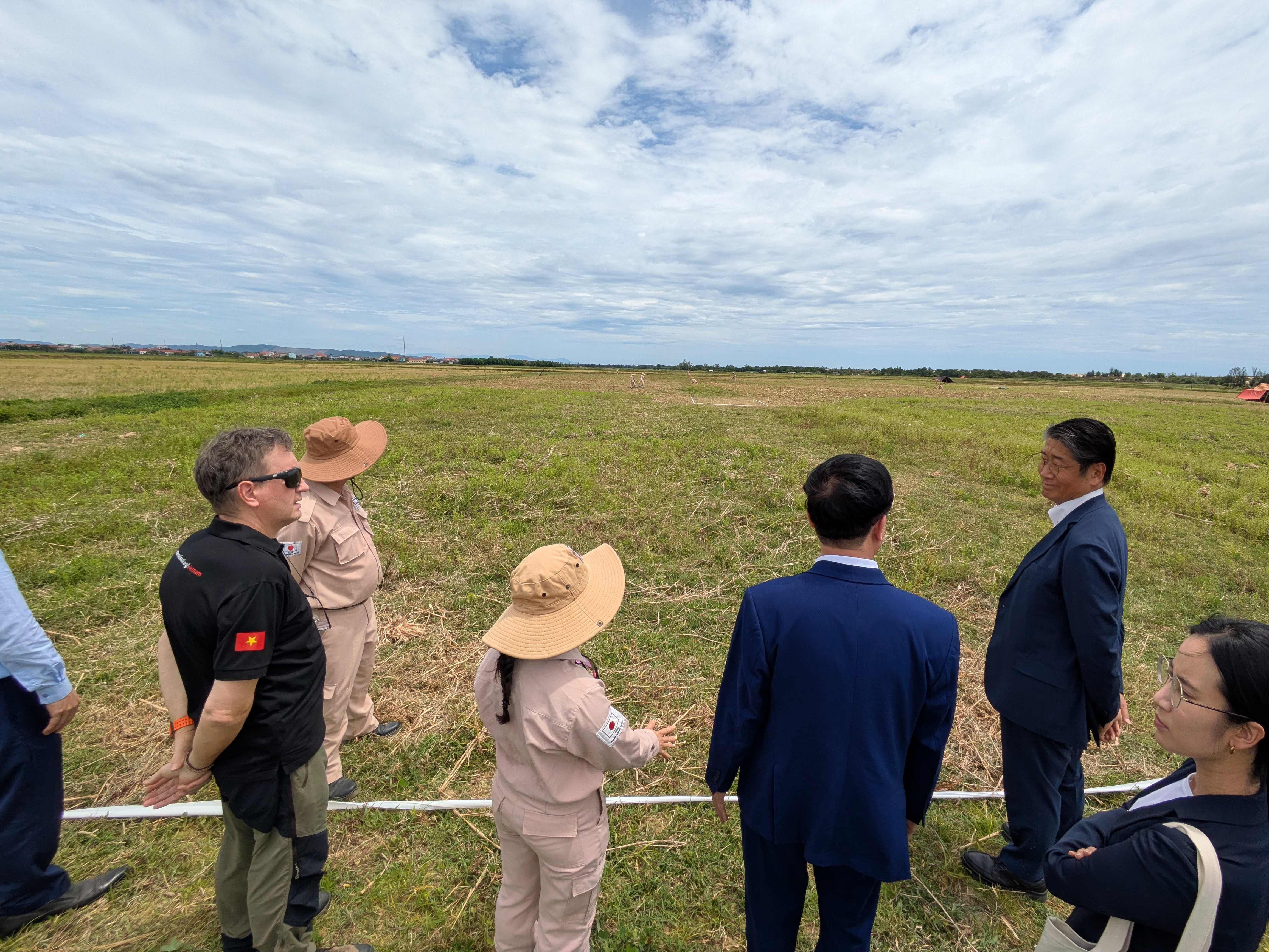 式典で伊藤大使は、安全な土地が住民に返還される瞬間に立ち会えたことへの喜びを語り、日本とベトナムが共に戦争と爆弾・地雷の深刻な被害を経験してきた歴史を振り返りながら、深い共感の意を示しました。また、北中部の新たな成長拠点を目指すクアンチ省において、安全な土地と生活環境の確保が持続可能な発展に不可欠であると強調し、国際社会に対して引き続き地雷除去支援に取り組むよう呼びかけました。