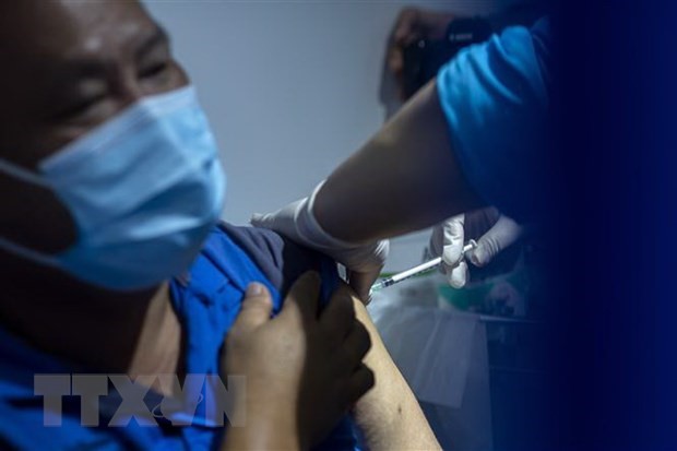 マレーシアの首都クアラルンプールで、ワクチン接種を受けている男性=THX/TTXVN |