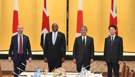 日本とイギリスの大臣らが対話に参加(写真:時事通信) |