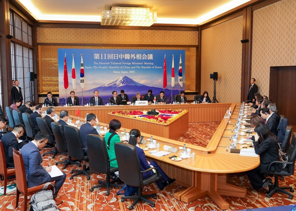3カ国の外相会談は2023年11月に韓国・釜山で開いて以来で11回目となっています。日本の岩屋毅 外相が議長を務め、中国の王毅共産党政治局員兼外相と韓国の趙兌烈外相が参加しました。