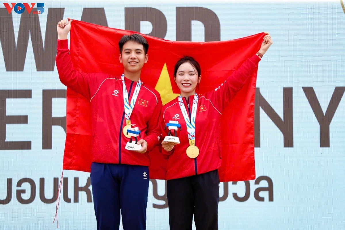 この日のベトナム勢最初の金メダルは、射撃の10メートルエアライフル混合団体で、レ・ティ・モン・トゥエン選手とグエン・タム・クアン選手が獲得しました。これは、今大会におけるベトナム射撃陣にとって初の金メダルです。
