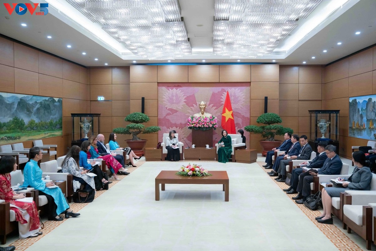タイン国会副議長との会見で、東アジア・太平洋地域ディレクターであるジューン・クヌギ氏は健康、栄養、水道水、衛生環境、子どもの保護に対するベトナムの強力なコミットメントを高く評価するとともに2024年の未成年者司法法が効果的に施行されることへの期待を表明しました。また、ジューン・クヌギ氏は世界が経済・金融の変動、気候変動、移住、高齢化といった新たな課題に直面している背景に、ベトナムが世界における模範的なモデルとなっており、発展戦略と政策に常に子どもを中心に据えていること、ベトナム政府が子どもの権利委員会の勧告を実施するための行動計画を承認したことを高く評価しました。一方、国連子どもの権利委員会のソフィー・キラゼ委員長は、ベトナムが子ども関連の活動に割り当てた予算の規模に感銘を受けたと述べたほか、国連子どもの権利委員会が子どもの権利保障政策の優先事項を実行する上で、ベトナムと協力する用意があると明らかにしました。